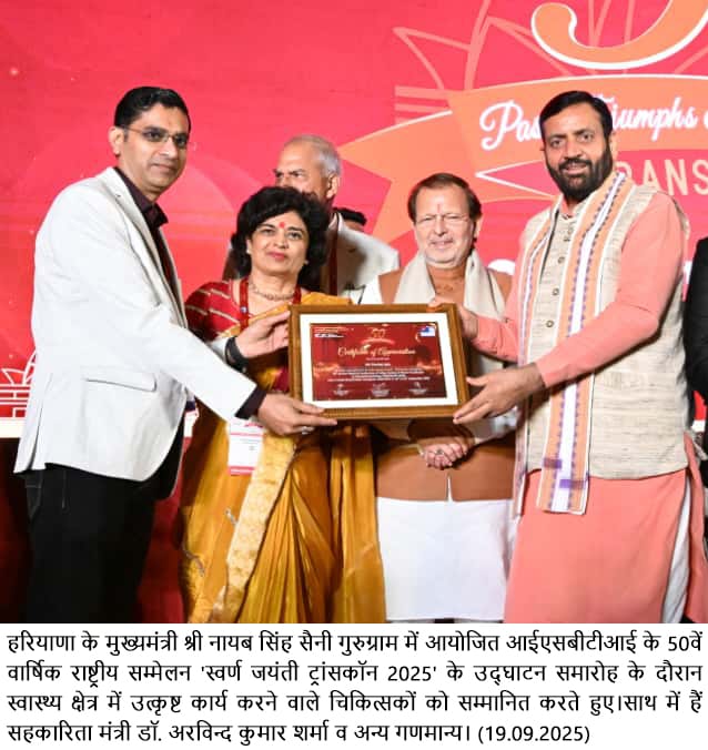मुख्यमंत्री ने गुरुग्राम में आयोजित आईएसबीटीआई के 50 वें वार्षिक राष्ट्रीय सम्मेलन ‘स्वर्ण जयंती ट्रांसकॉन 2025’ के उद्घाटन समारोह को किया संबोधित