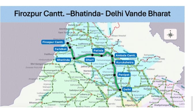 फिरोजपुर कैंट-बठिंडा-पटियाला-दिल्ली के बीच नई वंदे भारत एक्सप्रेस प्रस्तावित