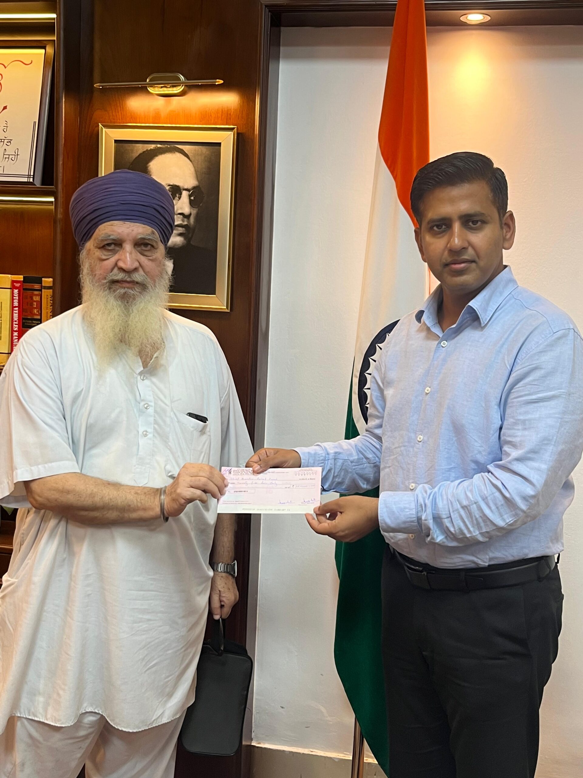 बाढ़ पीड़ितों की मदद के लिए डिप्टी कमिश्नर को 25 लाख रुपये का चैक सौंपा